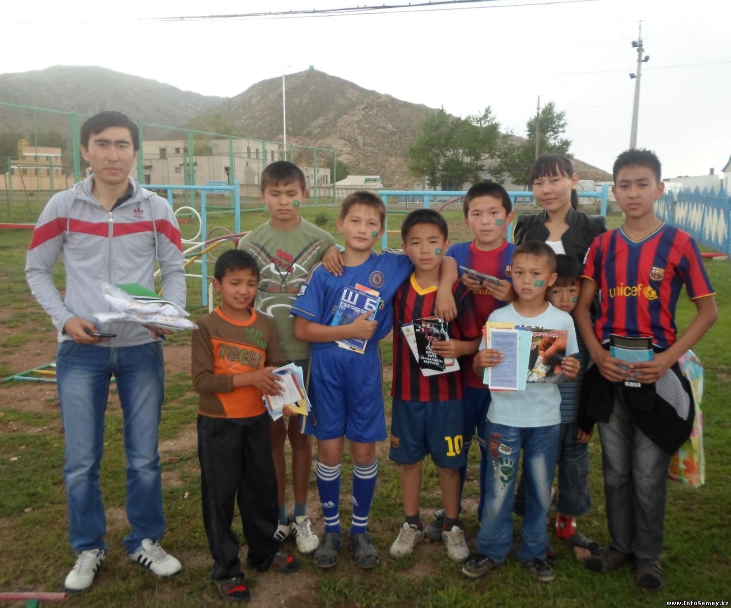 школы среди детей и молодежи села был организован футбольный матч, который