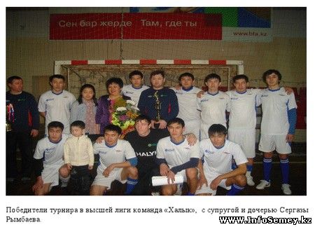 В Семее завершился турнир по футзалу, посвящённый памяти известного футболиста семидесятых, восьмидесятых, многолетнего капитана команды «Спартак» Семипалатинск, Сергазы Рымбаева. Турнир памяти С.Рымбаева — традиционный и в этом году проводился уже в седьмой раз. Турнир проводится под патронажем городского отдела физической культуры и спорта, городской федерации футбола.